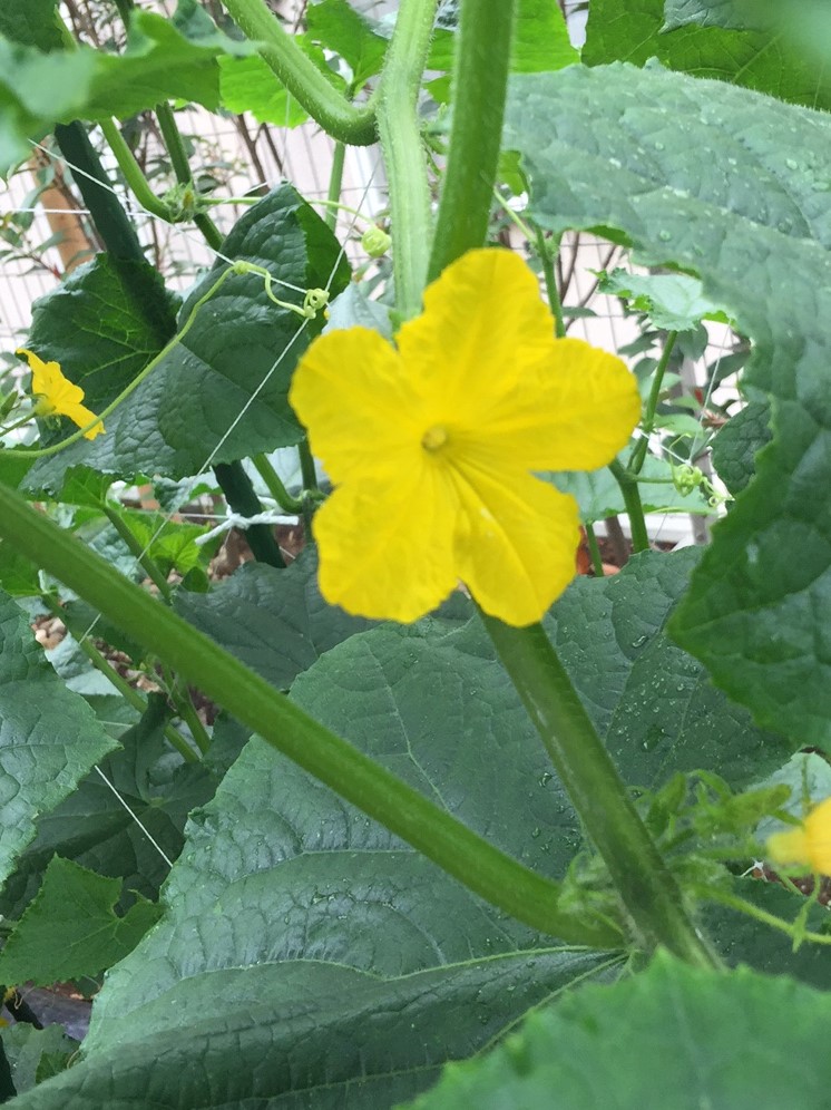 きゅうりの花は意外と鮮やかな黄色ですね。