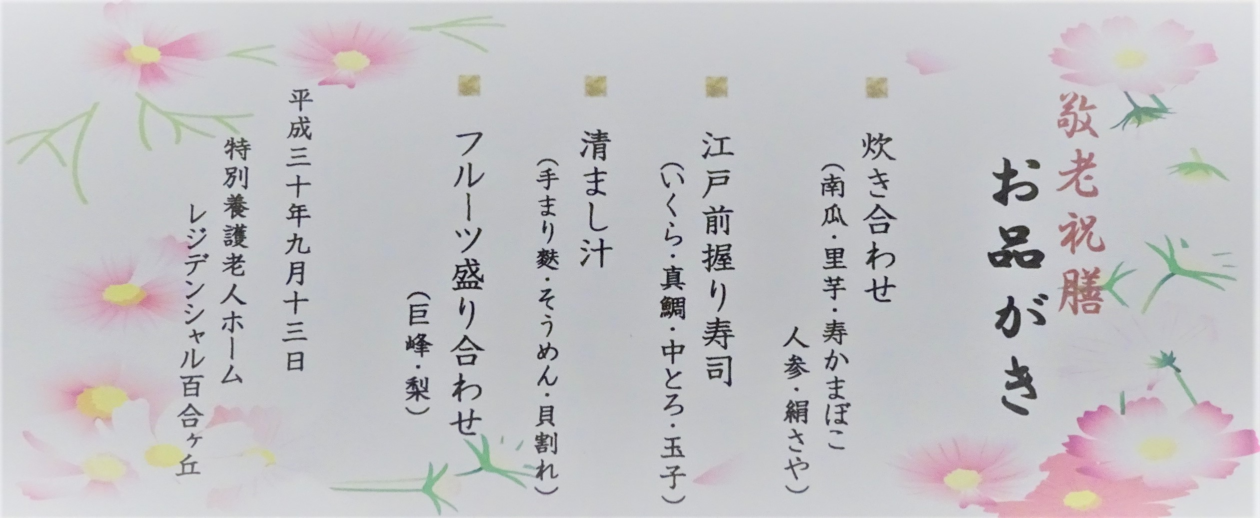 ご入居者の皆様、そしてご家族の皆様、この度は敬老の日、おめでとうございます!