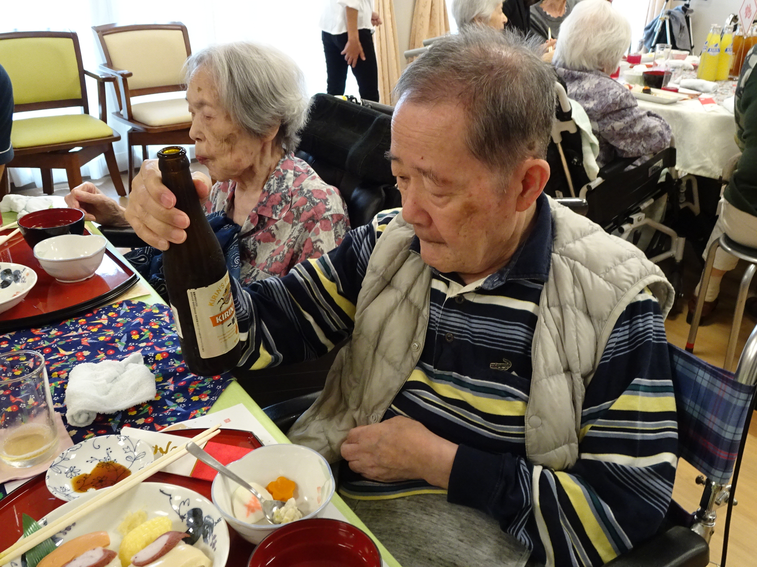 美味しいお寿司をつまみにビールも進んだようで、ほんのり顔が赤いご入居者様もいらっしゃいました。
