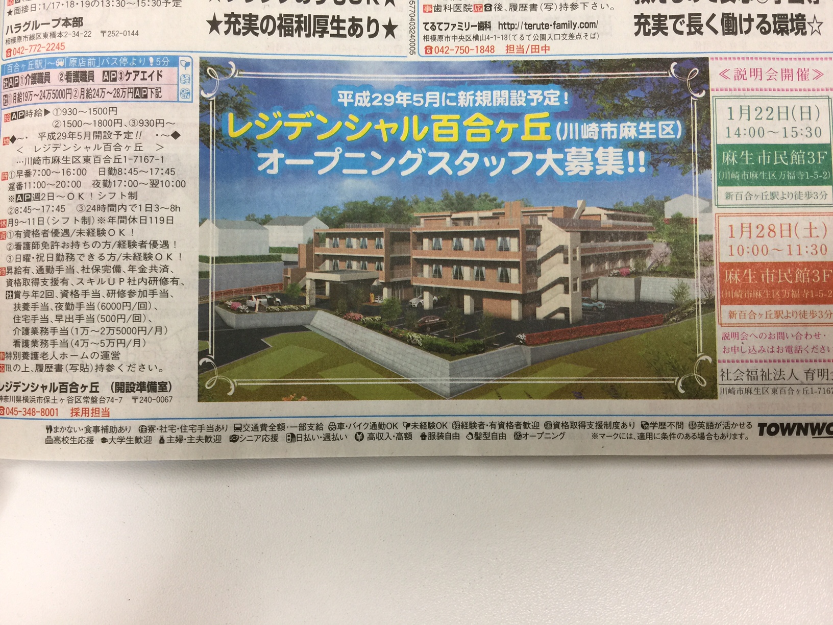 なお、募集に関しては、フリーペーパーのタウンワークにも掲載中です。